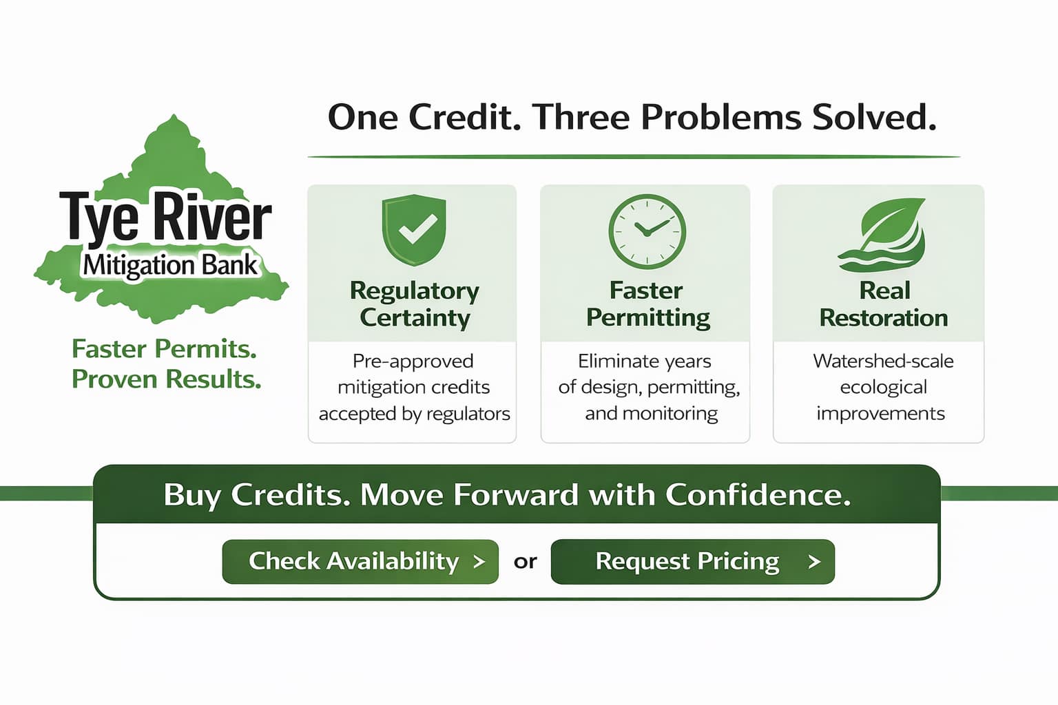 Tye River Mitigation Bank credits are designed to solve multiple challenges simultaneously—giving you a faster, safer, and more reliable path to permit compliance.1. Regulatory Compliance—Handled with Certainty
