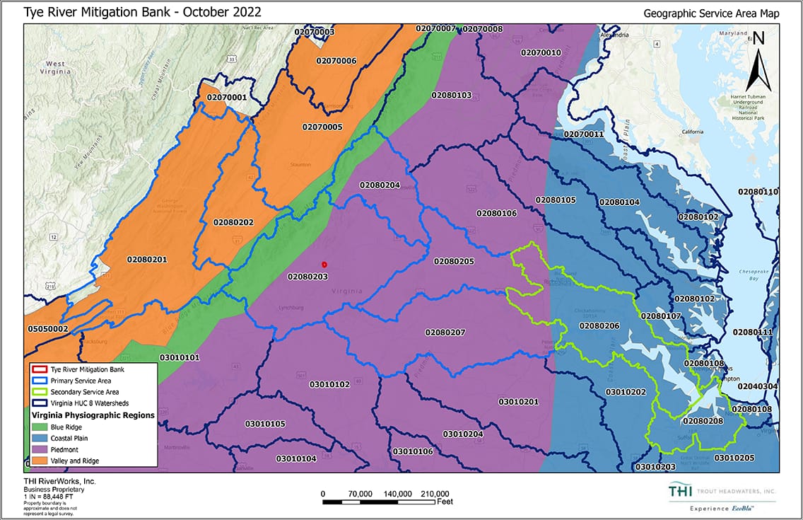 Tillman Conservation, LLC., the Bank Sponsor, has established the Tye River Mitigation Bank to provide offset compensation for the unavoidable loss of jurisdictional Waters of the United States, including streams and riparian buffers, and their associated ecological functions and services related to permitted impacts within the Geographic Service Area (GSA) under Section 404 of the Clean Water Act and Section 10 of the Rivers and Harbors Act.